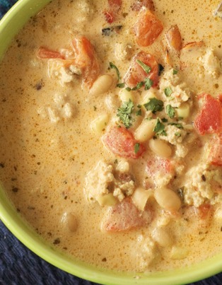 This is a super simple meal to make for a busy lifestyle. Everyone will love this creamy, spicy soup. It isn't your traditional chili, and that is a good thing because it is healthier! Serve it at those outdoor gatherings to stay warm, potluck dinners, or