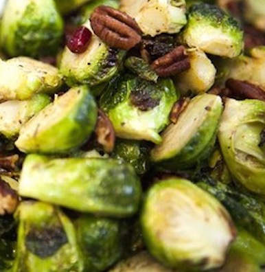 Brussels Sprouts have a bad reputation-so change it! Baked or roasted with olive oil, pecans, salt, pepper, and garlic powder, then sprinkle on pomegranate seeds and something magical happens. Not only are they good for you, they are really delicious to