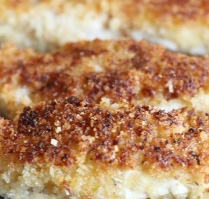 Pour oil to cover the bottom of skillet and set on medium-high heat. Pour some Jalapeno ranch dressing on a plate or in a bowl. Mix bread crumbs, cheese and seasonings in a shallow bowl. Dip chicken in the dressing and then coat in the bread crumbs.