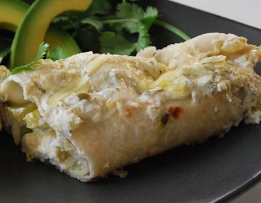 Make enchiladas with a delicious, creamy, green sauce instead of the traditional red sauce. Swiss immigrants to Mexico brought their influence with them, hence the use of dairy in these enchiladas.