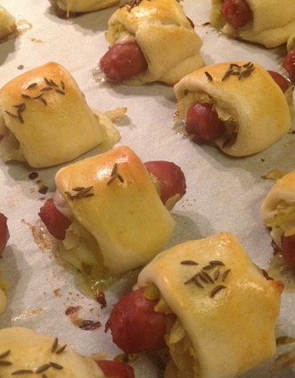 Need an appetizer for a get together? Make these Reuben-like pigs in a blanket and serve alone or with Russian or Thousand Island dressing or your favorite dip.