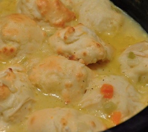 Shred chicken when done. The last hour, cut the biscuits into fourths and place them in with the rest of the ingredients. Allow the biscuits to cook thoroughly (about 50 minutes). After biscuits are done, stir the biscuits in so they incorporate with everything else. Remove bay leaf.