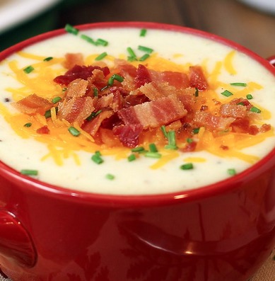 Make this delicious, but quick baked potato soup in 20 minutes. It is loaded with potatoes, cheeses, bacon, chives and sour cream. Serve it as a main dish for lunch, or as a side-dish for the main meal.