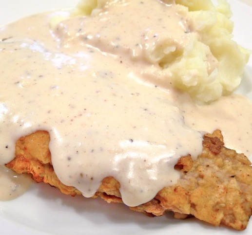 Season with salt and pepper. Serve the cream gravy over over the chicken fried steak. Serve with mashed potatoes, if desired.