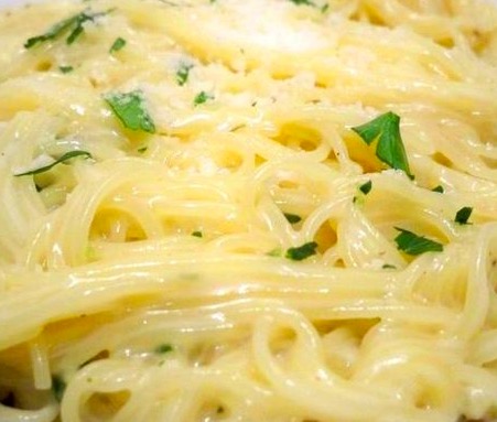 This garlic spaghetti is great as the main dish or as a side dish. Serve it alone with a salad and garlic bread, or along side chicken. Grilled chicken strips added to the spaghetti would be delicious as well.