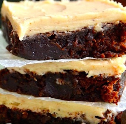 Spread the frosting over the cooled brownies. Allow frosting to set, about 20 minutes or so at room temperature, before cutting into squares. Serve immediately.