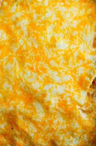 Pour the remaining cup of chile sauce over the last layer of tortillas. Sprinkle generously with cheese. Bake until cheese is melted and the sides are bubbling, about 20-25 minutes.