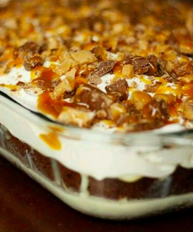 Take your German Chocolate cake to a whole new level with this recipe. Sweetened condensed milk, Cool Whip and Heath chocolate make it truly scrumptious.