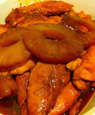Place the chicken breasts into the crock; top with the pineapple slices. Spoon some of the BBQ sauce mixture over the chicken.