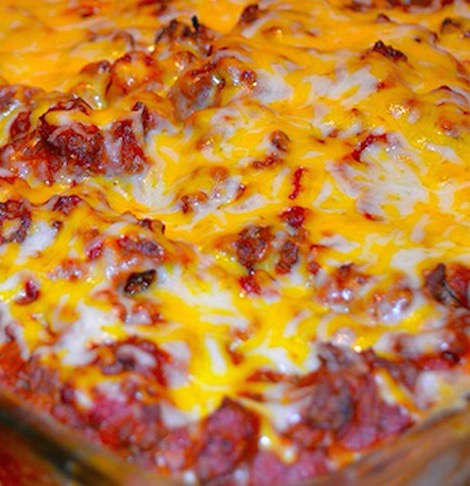 Bake 30 minutes. After 30 minutes, remove the casserole from the oven and spread a layer of the cheddar cheese evenly on top. Return to the oven and bake for 10-15 minutes or until the cheese has melted.
