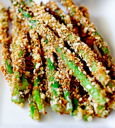 Make these asparagus fries for an appetizer, a snack or as a side dish. They are wonderfully crisp even though they are baked, not fried.