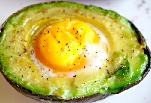 Cut avocado in half. Remove pit. Scoop out just enough avocado in each half to fit an egg yolk. Check to see if each half will sit level on the pan without tipping. If necessary, slice off a little on the bottom side to make them level so that the egg will not slide out.