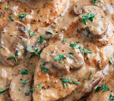 Chicken and Mushroom Skillet in a Creamy Cheese and Mustard Sauce