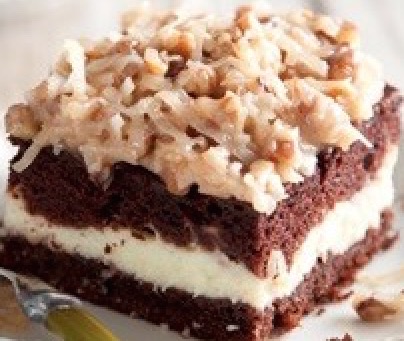 This dessert is so much easier to make than the traditional German chocolate cake. Be sure to refrigerate it after baking so that it is at its best.