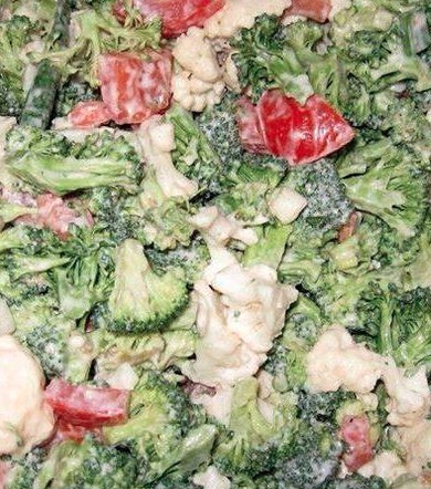 Blanch the broccoli and cauliflower about 1 to 1 1/2 minutes; chop and place in a large bowl.