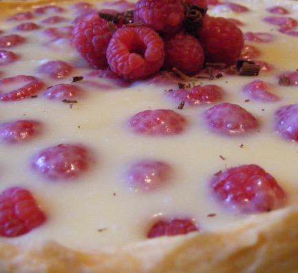 Enjoy the deliciousness of white chocolate paired with raspberries in this great dessert. Garnish with powdered sugar or white chocolate shavings and extra raspberries.