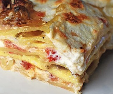 Breakfast was never so good! Try this breakfast lasagna full of pasta, sausage, Mozzarella, Cheddar and Ricotta cheeses and tomatoes. Yum!