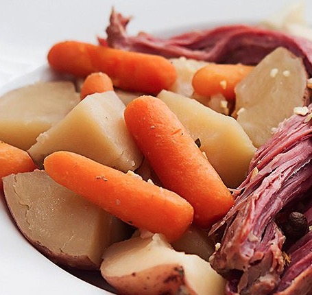 If you like corned beef but aren't crazy about cabbage, then this dish is for you! It still has potatoes and carrots along with the corned beef brisket, but it includes celery as well. Serve with sauerkraut or any side that you prefer.