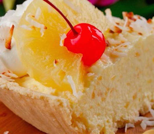 In a small bowl, combine the dry pudding mix and sour cream; stir in pineapple. Spread into crust.