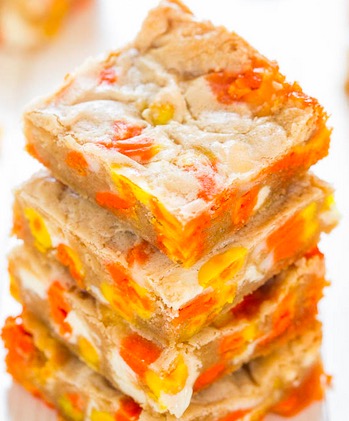 What says fall or Halloween better than candy corn? How about white chocolate blondies with candy corn?
