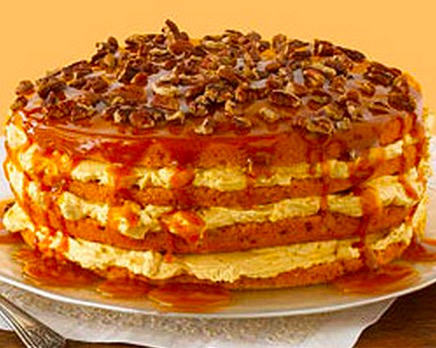 Don't care for pumpkin pie or don't feel like making one? How about trying a pumpkin cake instead? Besides pumpkin, is has pecans, caramel, whipped topping and cream cheese.