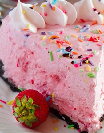 When firm, remove cheesecake from springform pan; decorate with additional whipped topping and garnish with sprinkles.