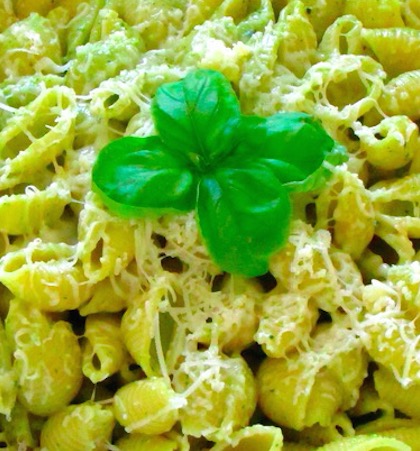 Turn heat down and stir to incorporate cream and pesto. Salt and pepper to taste. Garnish with more Parmesan cheese, if desired.
