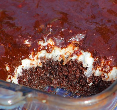 This wonderfully delicious cake is heavenly, even if you make it with a Devil's Food cake mix! It is filled with the yummy goodness of melted marshmallows, coconut and chocolate.