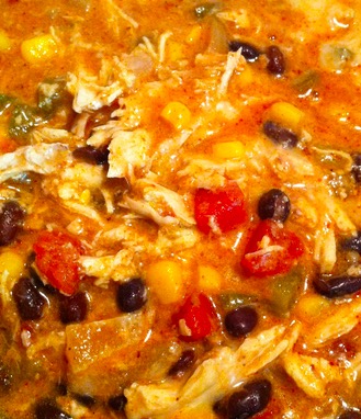 Pour in remaining chicken stock/broth; add chicken, beans, tomatoes, corn, chiles and enchilada sauce. Bring to a boil; reduce heat and simmer for 5 minutes. Taste and adjust seasoning, as necessary.