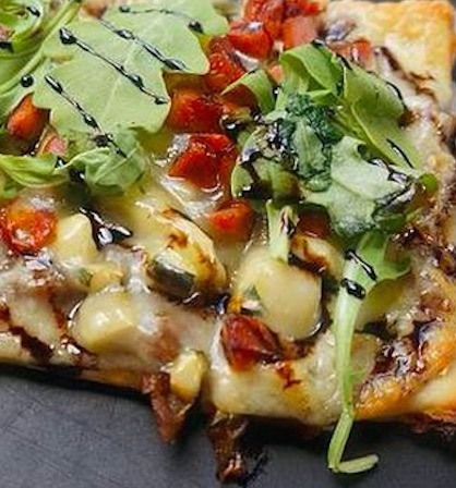 Cheesy Zucchini Arugula Onion Flatbread