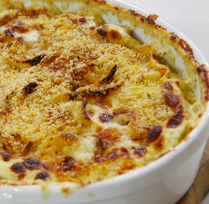 Whether you are serving these for your holiday or weeknight dinner, everyone will love these wonderfully delicious potatoes. They are made with two different cheeses, onion, nutmeg and Half and Half topped with breadcrumbs and cheese.