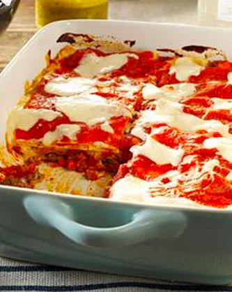Change up your traditional lasagna with this amazingly delicious recipe. Even people who don't care for lasagna will like this one. It is made with Alfredo sauce, marinara sauce and other traditional ingredients. It is rich, but at the same time light and
