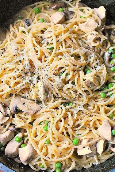 5-6 c. chicken stock, broth or water (adjust to how much pasta you are using) You can replace some of this liquid with white wine, if desired.