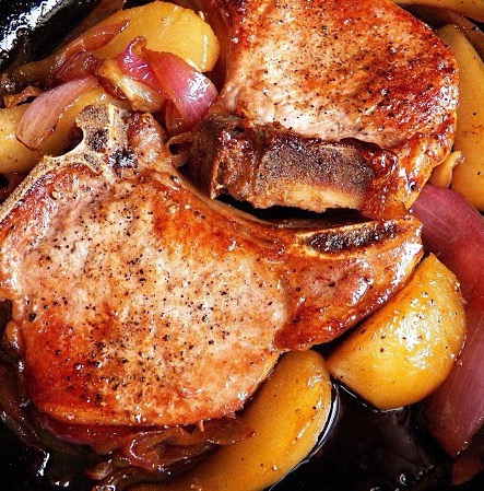 Make those pork chops special with pears and and red onion. Red wine vinegar, honey and balsamic vinegar make a sauce that can't be beat.