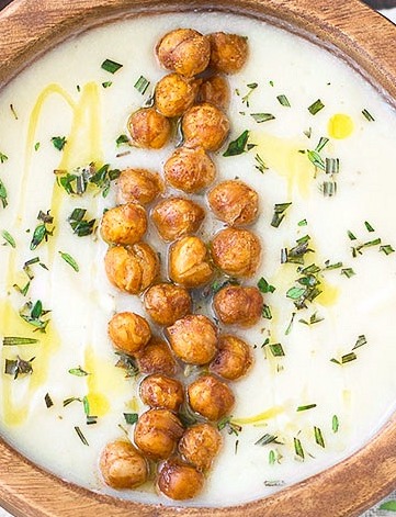 Serve in bowls garnished with fresh thyme, roasted chickpeas and a drizzle of extra virgin olive oil, if desired.