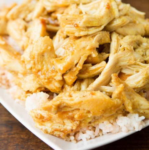 Shred the chicken and place it back into the sauce. Stir. Serve over rice or buttered egg noodles.