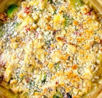 Broccoli, chicken, roasted red peppers and Cheddar cheese with a breadcrumb topping make for a satisfying and delicious meal. It is quick and easy too!