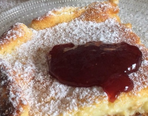 Remove pan from the oven and cut immediately. It will deflate a little, but that is okay.