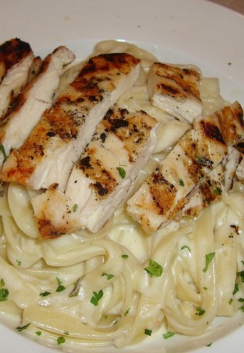 Next time you're grilling chicken, make extra and freeze it so that you can prepare this wonderfully filling, comfort pasta dish anytime. It makes a simple and quick hearty meal with slightly smoky grilled chicken over a rich and creamy Alfredo sauce and