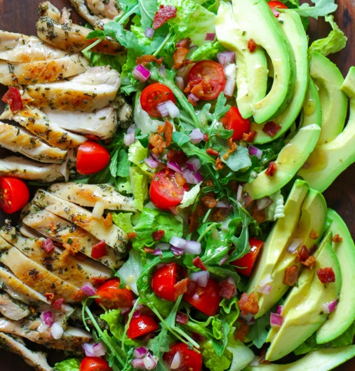 Make a healthy, light, low carb main dish salad for lunch or dinner that is satisfying and delicious. Since warmer weather is approaching, grilled chicken can be used as well.