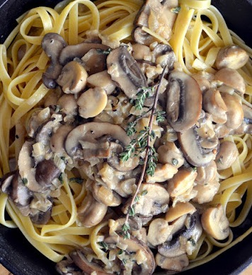 When the fettuccine is just ready, either add pasta to the sauce and toss, or place it in a serving bowl and top with the sauce.