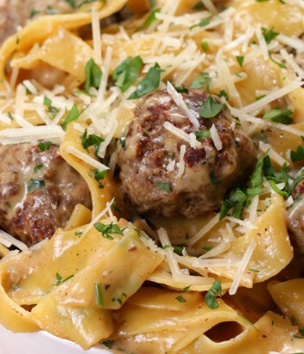 Add the beef stock/broth, milk, salt, pepper, and Worcestershire sauce; stir. Bring to a boil; add egg noodles; stir constantly until the pasta is cooked and the liquid has reduced to a sauce that coats the noodles, about 7-8 minutes. Add the Parmesan cheese and parsley, stirring until the cheese is melted.