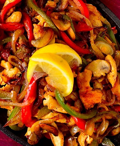 Make these simple to prepare tortillas with chopped vegetables, chicken, seasoned salt, cumin, and freshly squeezed lemon juice, which is the magic ingredient to great tasting chicken fajitas.