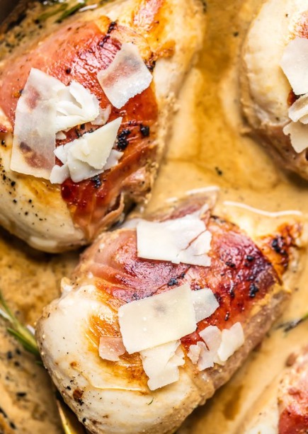 Wash chicken and pat dry with paper towels; season with salt and pepper, to taste. Wrap each breast with 1prosciutto slice, pushing down the edges to adhere.