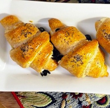 Fill refrigerated crescent rolls with cream cheese, a little butter, bits of olives and make a wonderful appetizer or rolls to enjoy with a meal.
