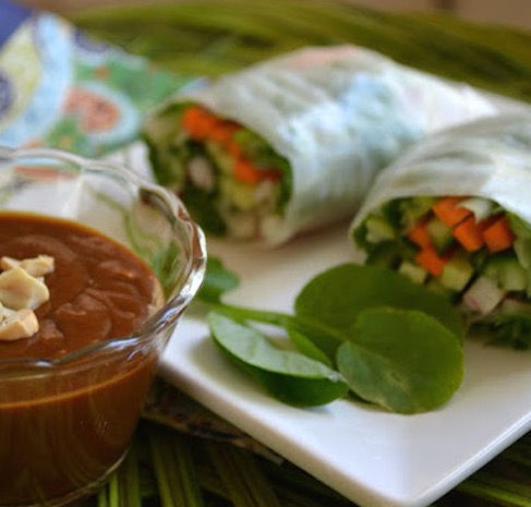 Vietnamese Summer Rolls with Spicy Peanut Dipping Sauce