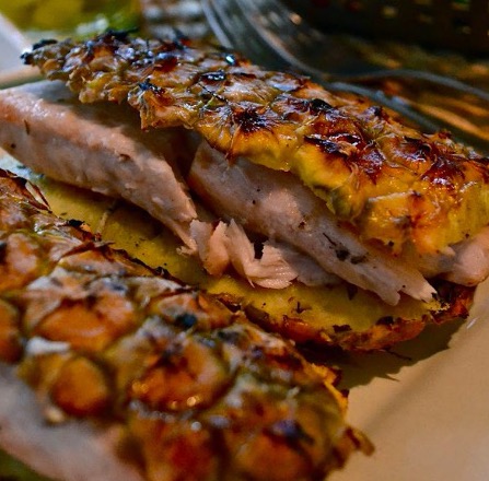 Give your meal an Asian influence with these delicious chicken breasts that have been marinated in a ginger and soy sauce marinade and then grilled on fresh pineapple "planks".