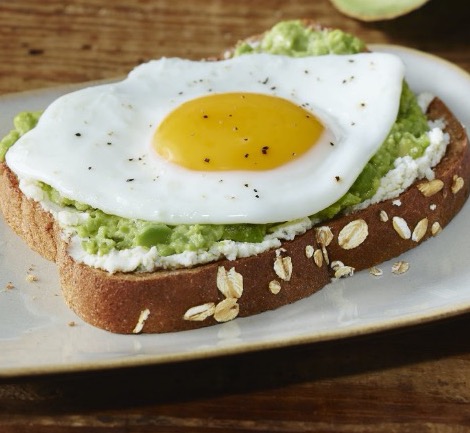 In small non-stick skillet, fry eggs for 1 minute per side. Top each slice of toast with a fried egg.