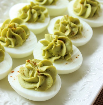 Take your deviled eggs up a notch with avocado. You will need less mayonnaise to make them creamy and delicious. Make them vegetarian by using imitation bacon bits or leave them out completely.