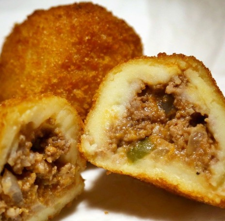 These delicious potato balls are truly special. They are filled with seasoned beef, then rolled into a ball of mashed potatoes, breaded and fried until crispy. Serve them as an appetizer or as the main dish.